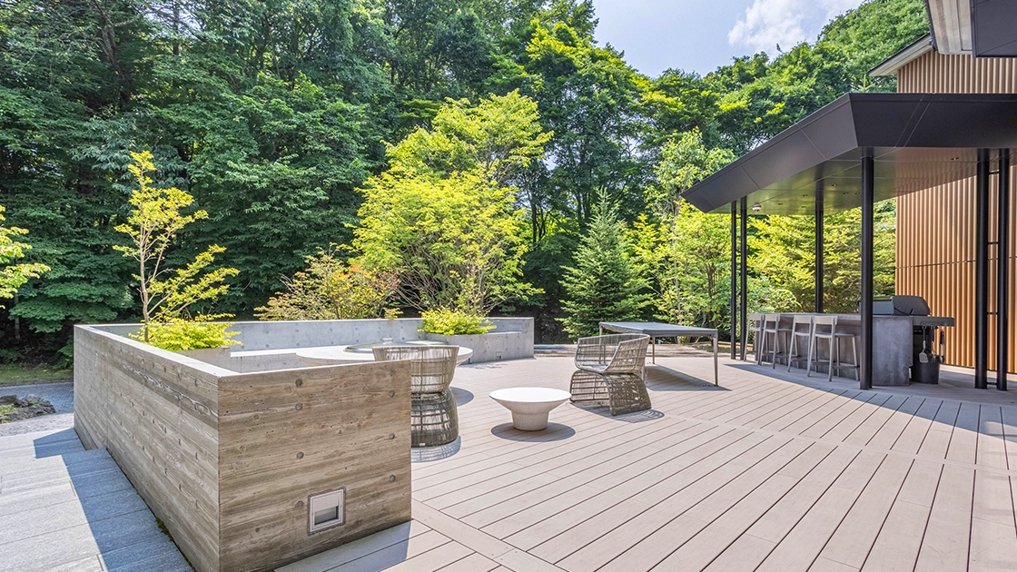 軽井沢の森に抱かれた約90㎡のプライベートガーデン(専用庭)付きのお部屋や