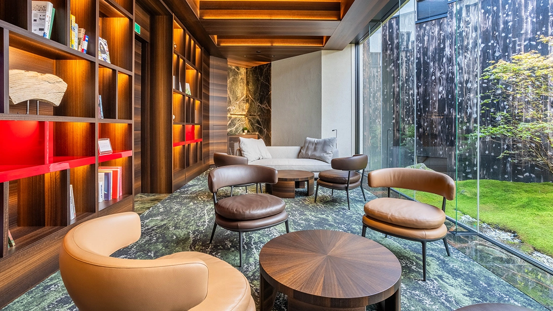 ライブラリー・ラウンジは、静寂の中で書籍を読んだり、手入れの行き届いた庭園を眺めながら思索に耽る空間としても利用できます。