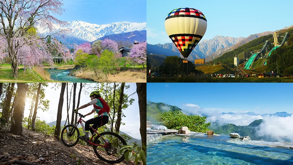 Beyond winter, the green season reveals Hakuba as a mountain resort rich in possibilities. With the snow gone, the grandeur of the Northern Alps can be experienced through a wide range of activities—from trekking and mountaineering to mountain biking. Experiences such as tethered hot-air balloon rides offer a more intimate encounter with nature, while the area’s scattered hot springs provide the perfect way to unwind and restore the body.